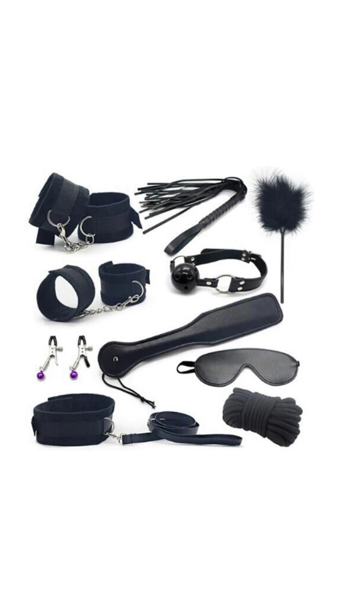 Kit básico de 10 piezas para iniciarte en el BDSM con seguridad y diversión. Accesorios cómodos, resistentes y listos para tus juegos de poder.