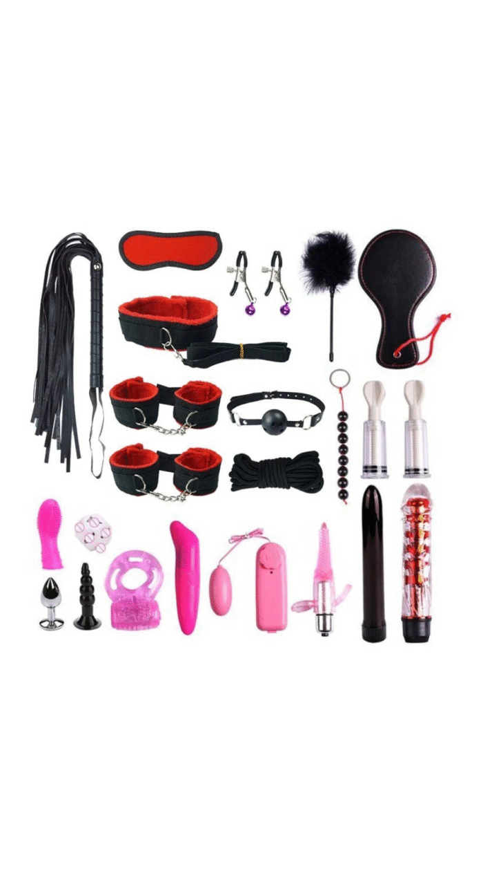 Adéntrate en el mundo del BDSM con este completo Kit Sadomasoquista de 23 Piezas, diseñado para despertar el deseo, el control y la entrega. Incluye esposas, látigo, collar, cuerda, mordaza, pinzas y más accesorios para juegos intensos y variados. Ideal para parejas que quieren explorar sus límites con seguridad y complicidad. Todos los elementos están fabricados con materiales cómodos, resistentes y fáciles de limpiar.